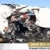 Массивный грузовик буквально смял автобус перевозивший иностранцев