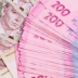 Купюры номиналом 200 грн разрезаются пополам, а затем склеиваются скотчем с сувенирными банкнотами