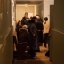 Десятки людей, пожилых и молодых, толпятся в крошечном коридорчике