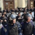 Часть митингующих вплотную подошла к милиционерам, которые охраняют здание