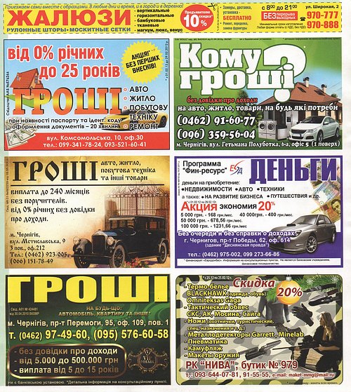 «Деньги без справки о доходах», «Деньги под 0 % годовых» и другие аналогичные заголовки выстроились в первые ряды на заглавных страницах печатных СМИ. Потребность в деньгах и заманчивые условия, прописанные в рекламе, действуют на человека как магнит, выключая его мозг и логику. Неграмотность населения в этой сфере, увы, очень велика, чем часто пользуются аферисты. Чем ниже становиться уровень жизни в нашем государстве, тем больше создается фирм, предлагающих аналогичные услуги. С одной стороны, вроде, ничего зазорного в этом нет, но пугает количество пострадавших. Подписывая кредитный договор, часто человек его вовсе не читает, хотя некоторых не спасает даже прочтение документа – люди не понимают смысл написанного.