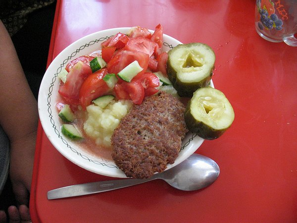Робочий день починається о 8.00, закінчується о 17.00, працюють 5 днів на тиждень. Іноді доводиться працювати з переробітком – понаднормово. Під час обідньої перерви працівників годують у власній столовій. Порції вражають, ціна смішна – 0,25 грн. за обід: