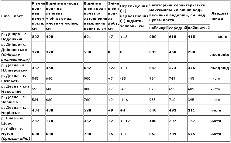 Моніторинг гідрологічної обстановки на річках області станом на 08 год. 00 хв. 15.04.2013 року: