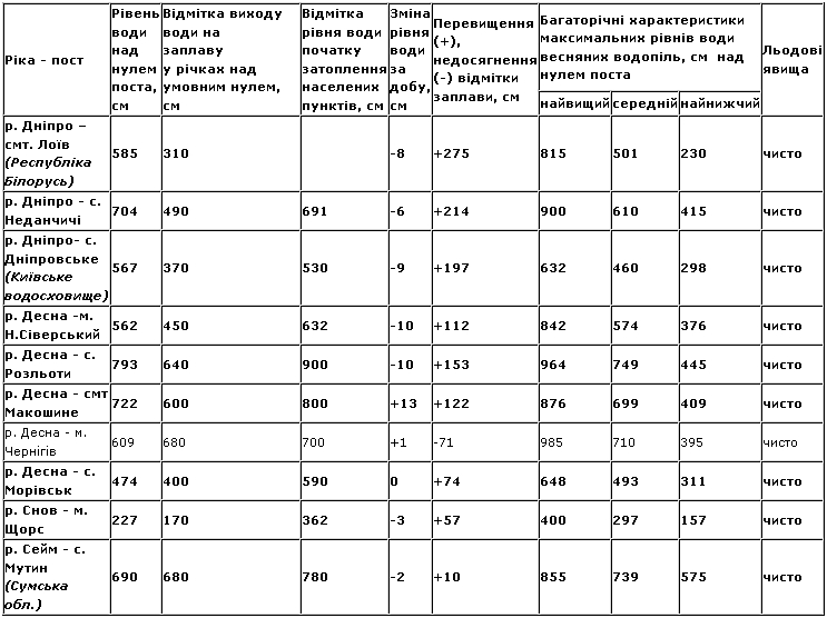 10. Моніторинг гідрологічної обстановки на річках області станом на 08 год. 00 хв. 07.05.2013 року: