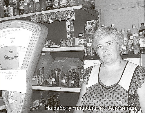 - За п'ять кілометрів із Дніпровського велосипедом їздила, - розповідає. - По воді, отак сантиметрів десять було над переднім колесом місцями, течія швидка, дуже важко. І колеса пробивала, й після води тріщав мій «коник» немилосердно. Добре, що начальство дозволило працювати в одну зміну без перерви. Торгівля йшла, може, навіть активніше звичайного, бо люди при нагоді намагалися запастися товаром.