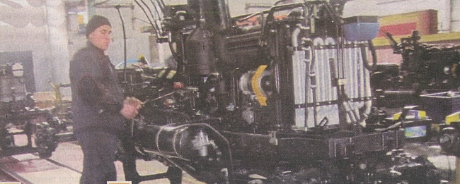 Збиральна лінія починається біля головного входу. Тут двигун Мінського тракторного заводу стає на візочок, до нього прикручують раму та мости. Двигун далі рухається по рейках і поступово обростає трубками, тягами. Потім до нього додають радіатор та інші частини. Двигун заповнюють маслом та водою. Заводять. Слухають його роботу, регулюють. Після того трактор без коліс і кабіни іде у фарбувальний бокс. Там деталі стають чорними. Затим прикручують колеса, ставлять кабіну, крила та капот. Трактор протягом однієї години обкатують на стенді, потім випробувач на заводському дворі пробує гальма та інші системи.