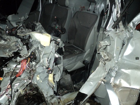 Ніжин, які прибули на місце події, за допомогою спеціального інструменту вилучили тіла загиблих з понівеченого автомобіля.