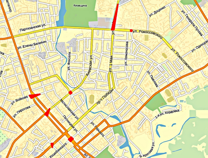 – район улицы 1-го Мая (от улицы Белова до улицы Седневской);