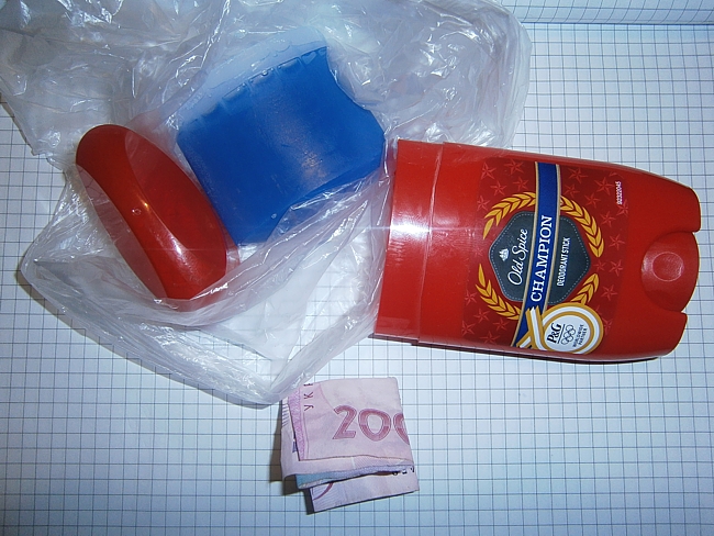 Кроме этого, в Прилуцкой воспитательной колонии, при получении посылки, в сухом дезодаранте OLD SPICE было обнаружено и изъяты деньги в сумме 200 грн.