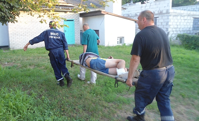 Двоє рятувальників дістали постраждалого за допомогою мотузок. Лікарі діагностували у нього відкритий перелом гомілки, наклали шину. Олександра доправили до Бобровицької центральної районної лікарні.