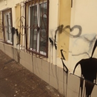 На улице Георгиевской неизвестные совершили акт вандализма. Черной краской залили стены офиса управления культуры, вырвали значительную часть водосточной трубы.
