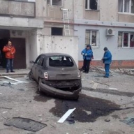 Люди помогают ликвидировать последствия обстрела