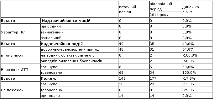 2. Пожежі: зареєстровано 5 пожеж, з яких 4 в житловому секторі, 1 інша. Травмовано 1 особу.