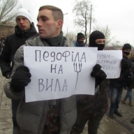 В 10:00 возле здания апелляционного суда состоялся пикет, с требованием изоляции от общества пастора Николая И. который является епископом «Церкви Иисуса Христа полного Евангелия». На пикете присутствовали представители «Нового Мариуполя», «Молодой Батькiвщини» и Самооборона города. Активисты собирали подписи с требованием «взять под стражу и содержания в лагере» вышеуказанного пастора. Пикетчики держали в руках плакаты с надписями «Педофила на вилы» и скандировали «Судьям - люстрацию, педофилам - кастрацию» и пели «Червону руту».