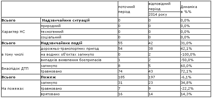 1. Надзвичайні ситуації: не зареєстровано.