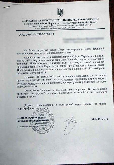 Чернигове, получили акт права собственности на земельный участок, вам даже «нарисовали» кадастровый номер, а потом выясняется, что ваша земля с возведенными на ней жилыми строениями находится за пределами городской черты. Фактически, документы, подтверждающие, что вы владеете N-ным количеством земельных соток в