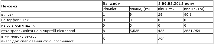 2. Пожежі: зареєстровано 18 пожеж, з яких 1 на об'єкті, 7 в житловому секторі, 9 в природних екологічних системах (1 не підлягає обліку) та 1 інша. Вогнем знищено 4 та пошкоджено 4 будівлі, вигоріло 5,5 га території. Причинами пожеж стало: необережне поводження з вогнем, неправильне влаштування та несправність нагрівальних печей, порушення правил монтажу електромереж та підпал.