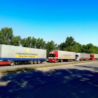 Утром 13 мая из Днепропетровска в Мариуполь выехала первая майская автоколонна 19-го Рейса Рината Ахметова с продуктами для переселенцев на подконтрольных Украине территориях Донбасса и жителей городов на линии соприкосновения.