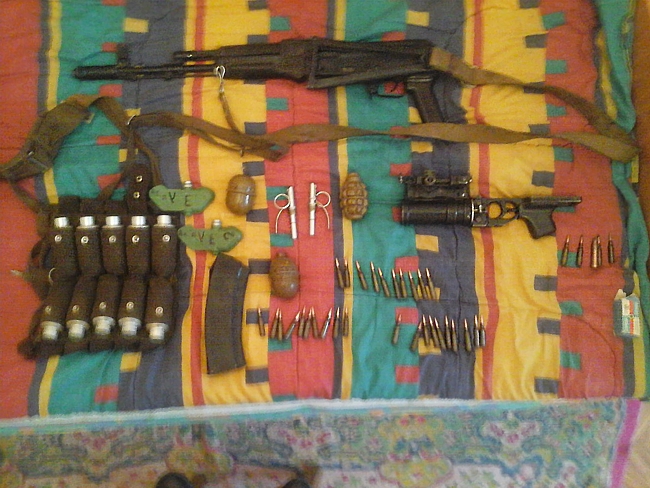 Під час обшуків співробітники СБ України вилучили у зловмисників автомат АК-74, підствольний гранатомет «ГП-25» з гранатами до нього, набої калібру 5,45 та 5,6 мм, гранати «Ф-1» та «РГД-5» із запалами та вибухівку.
