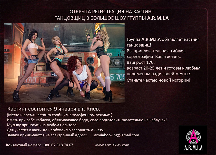 Открыта регистрация на кастинг танцовщиц в большое шоу группы "A.R.M.I.A"