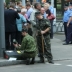 На месте находятся три милиционера в бронежилетах